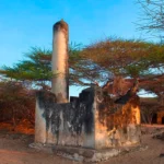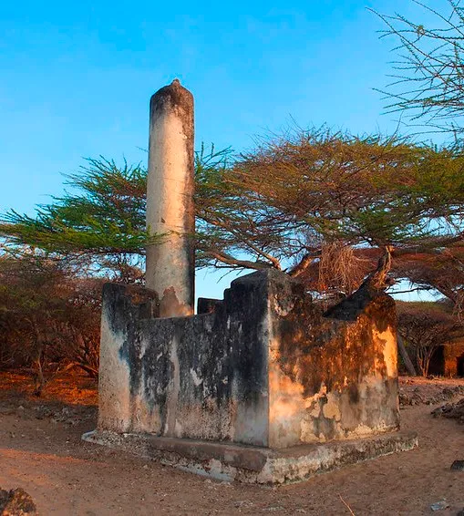 This is endorsed in the Lamu chronicle which state that although the people of Lamu were prepared to give them shelter they did not, however, permit them to build their houses of stone. Takwa Ruins have the remains of a spacious mosque; above its mihrab is a pillar. This salient detail appears once more in the 15 century domed mosque of Kilwa where the stone pillar is fluted. At Takwa, the pillar is believed to signify the burial of a Sheikh. There are remains of a second town just east of Takwa. The focal interest is the 2.5 ms high stone column at the north end.