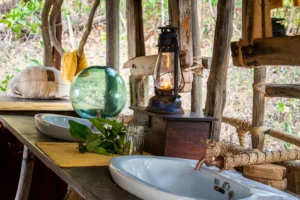 Accommodation: Bandas are built from makuti (palm fronds) and provide a "sleeping in nature" experience with hammocks, mosquito nets, and stunning views, notes this review on TripAdvisor.
